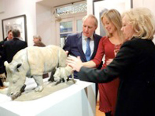 A bronze sculpture of Cotswold Wildlife Park’s first baby Rhino took centre stage at art exhibition ‘Bronze, Black & White’, which opened in London this week at the Royal Opera Arcade Gallery in Pall Mall.