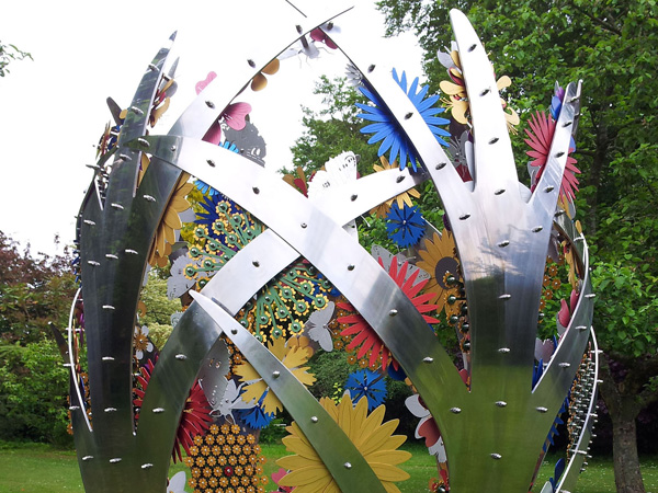 The whole display is crowned by the impressive sculptural pieces of Ruth Moilliet, who is also new to the villa. Her giant plant buds made of metal sheets contain hundreds of colourful flowers, which delight audiences of all ages.