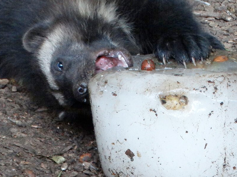To keep thier animals cool in this heat, keepers at Cotswold Wildlife Park treated the new Wolverine babies (the only ones born in the UK this year) to an iceberg made of honey, nuts and raisins. One of the Wolverine kits wouldn't share it with its sibling and this was caught on video (see below). The young kit finally ended up sitting on its sibling in an attempt to stop them stealing their ice treat.