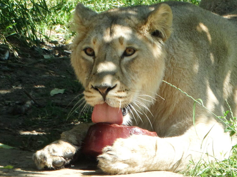 The Lions were given blood lollies, Lemurs treated to frozen blueberry smoothies (with mixed fruit) and the mob of Meerkats were given one of their favourites - refreshing watermelon. One Meerkat in particular, dominant male Marley, was so possessive over the treat, he did everything he could to stop the others taking a bite. Photos include him sinking his sharp teeth into the watermelon. Once you see the photos, you'll know why he's been given the nickname 'snarly Marley'.