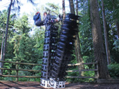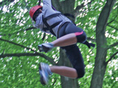 The third and final challenge was the ‘Leap of Faith’. I wasn’t sure what the previous one was called but if I had to name it would be the ‘Totum Pole of Doom’. The ‘Leap of Faith’ was simple. To climb to a platform half way up a tree (very big tree) and launch ones body through the air and catch a trapeze swing. Easy. Well, my daughter made light work of it and then seeing the hesitation in my son’s eyes, I decided to go second. Still buzzing form the previous task, I climbed to the platform and looked at the trapeze, which was about a metre away. Again the realistion of my phobia of heights hit me. “Mind over matter, mind over matter”, the voices in my head kept saying. Leaping from the platform and grasping the trapeze with my sweaty palms wasn’t as bad as I thought – it’s just that bit beforehand which is the worse. Once completed, I let go of the trapeze and was lowered gently to the ground. My son overcame his initial fears and all three of us had another go – this time with the trapeze further away. Making and maintaining contact with the trapeze was a relief, but still having to let go was a daunting thought, but then again, this was the only way down to terra firma.
